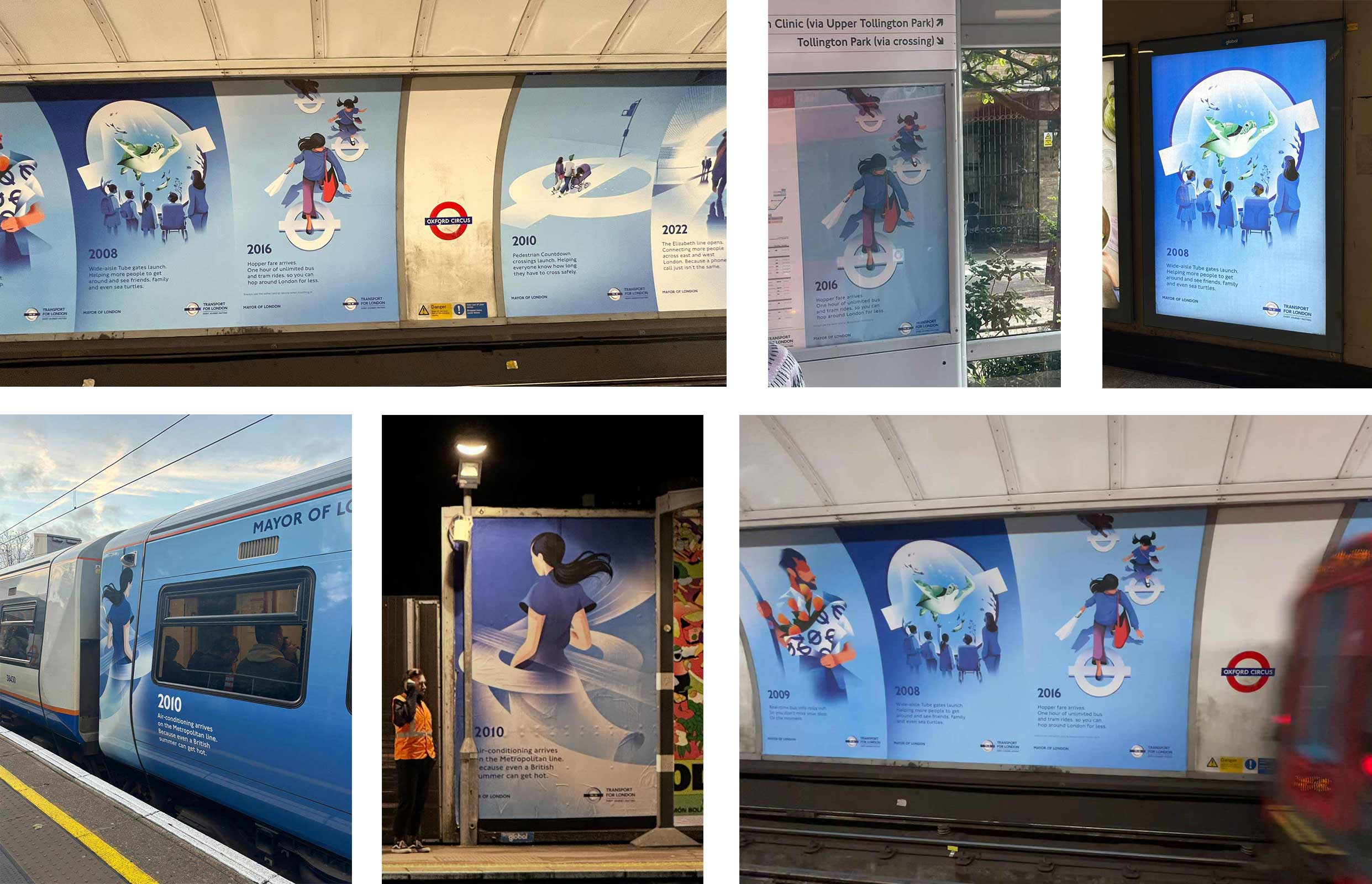 It has been such a thrill to see Nathalie’s posters out and about in our home city of London over the year amongst artworks from other incredible artists. And it is really wonderful to be part of a campaign that really celebrates illustration and it’s capacity to communicate (at times awkward) concepts. Transport for London has a always been brand that has embraced illustration and long may it continue. Huge thanks to VCCP for having Nathalie make up a substantial chunk of this beautiful campaign!